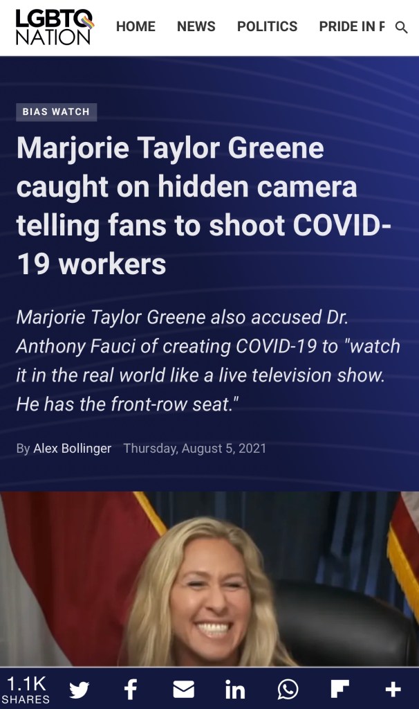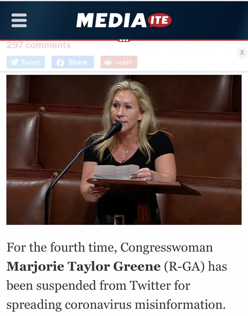 The “Jewish Space Laser” elected member of the US government is telling her supporters not to use masks and that the vaccines don’t work?